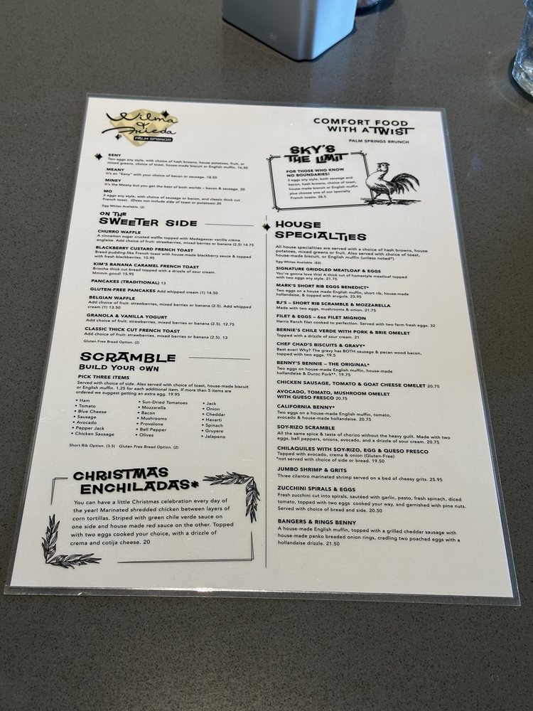 Welcome to Wilma & Frieda’s, a delightful haven for breakfast and brunch nestled in the heart of Palm Springs. This vibrant, women-owned eatery boasts a menu that is sure to tantalize your taste buds. From the standout Churro Waffle to the indulgent Blackberry Custard French Toast, each dish is thoughtfully crafted, balancing savory and sweet flavors in every bite.